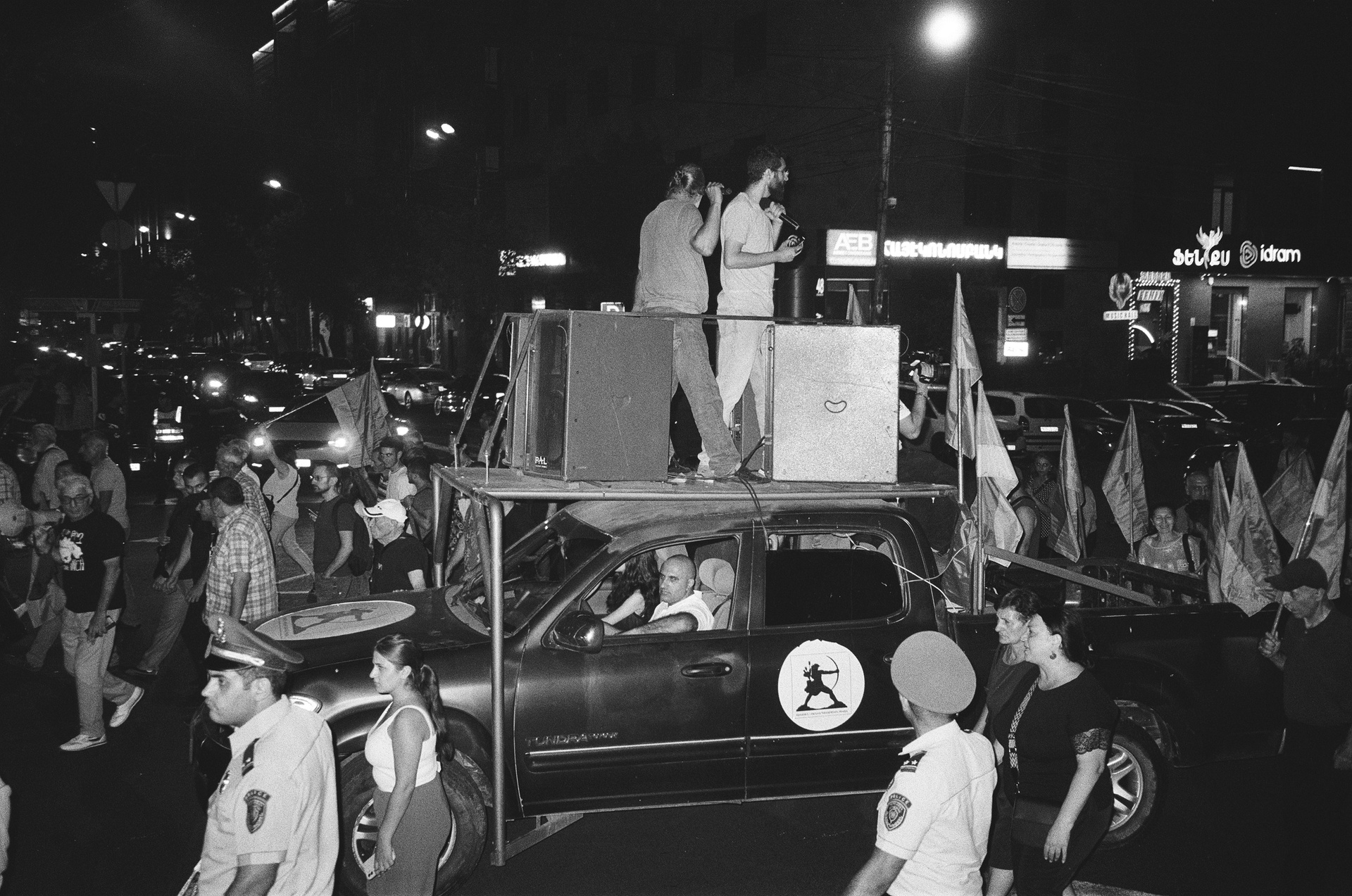 The vehicle from which music was broadcast during the rallies. Similar vehicles also drove around the city during the day, encouraging Yerevan residents to participate in the protests.