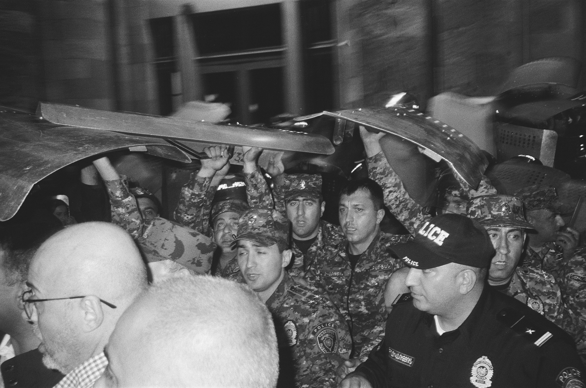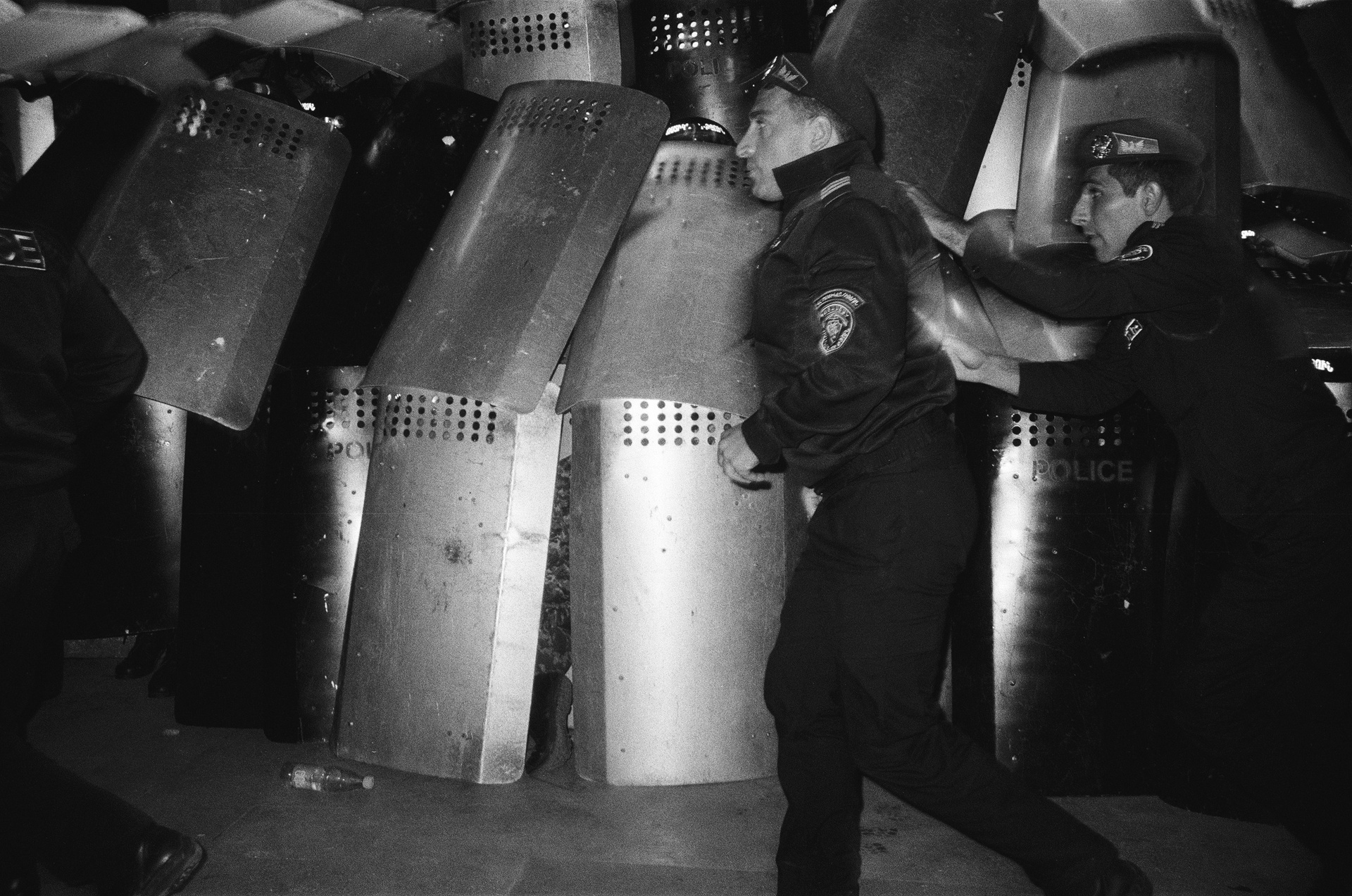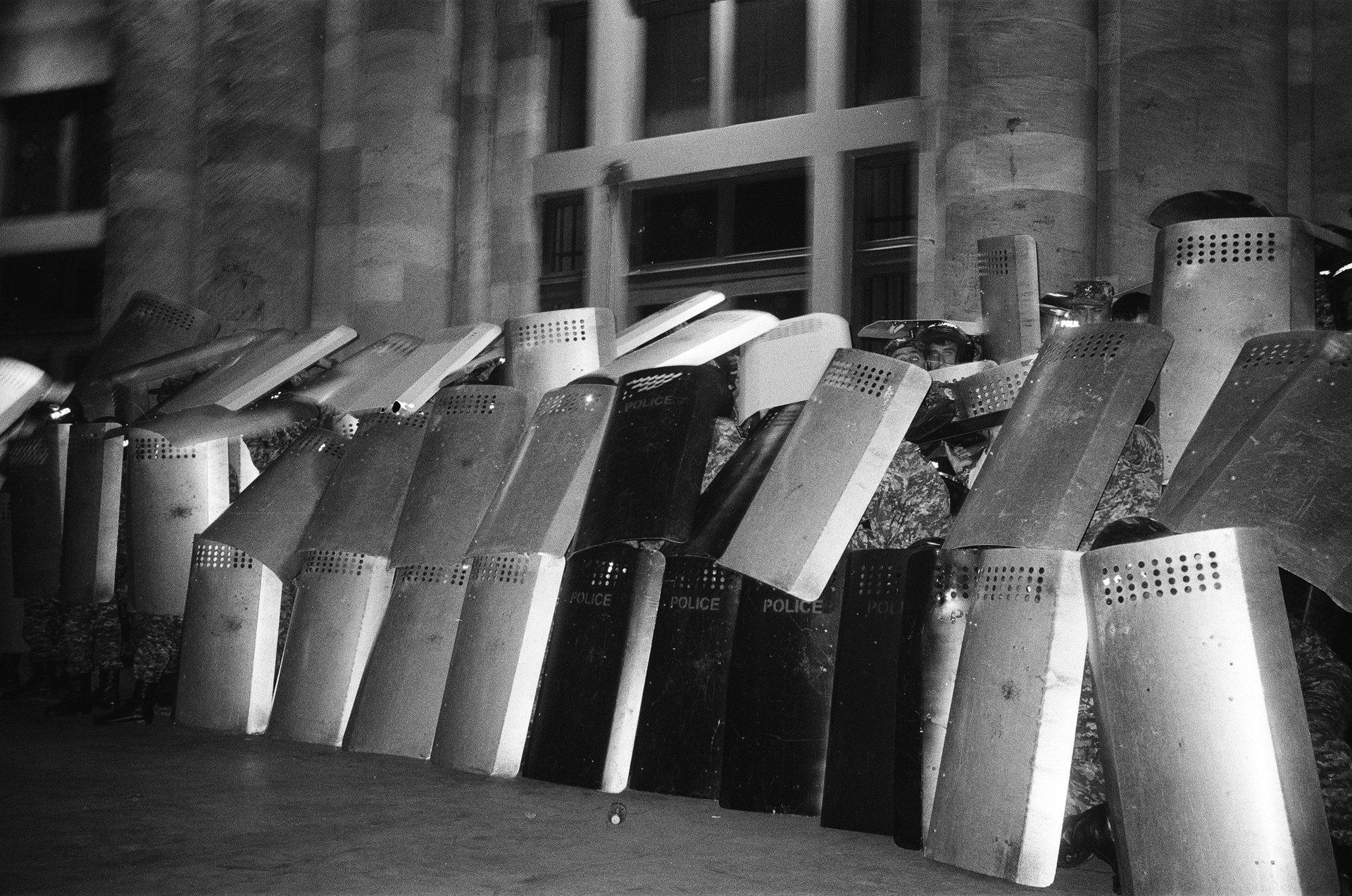 Clashes with the police began on the very first day. The fiercest occurred at Republic Square, near the government building. Protesters threw stones, bottles, and anything they could get their hands on at the police. The police responded with flash grenades, surrounded people, and made arrests. During attacks on the police, their shields would suddenly open, and a column of officers would rush out, seize the most aggressive individuals, and drag them back behind the shields.