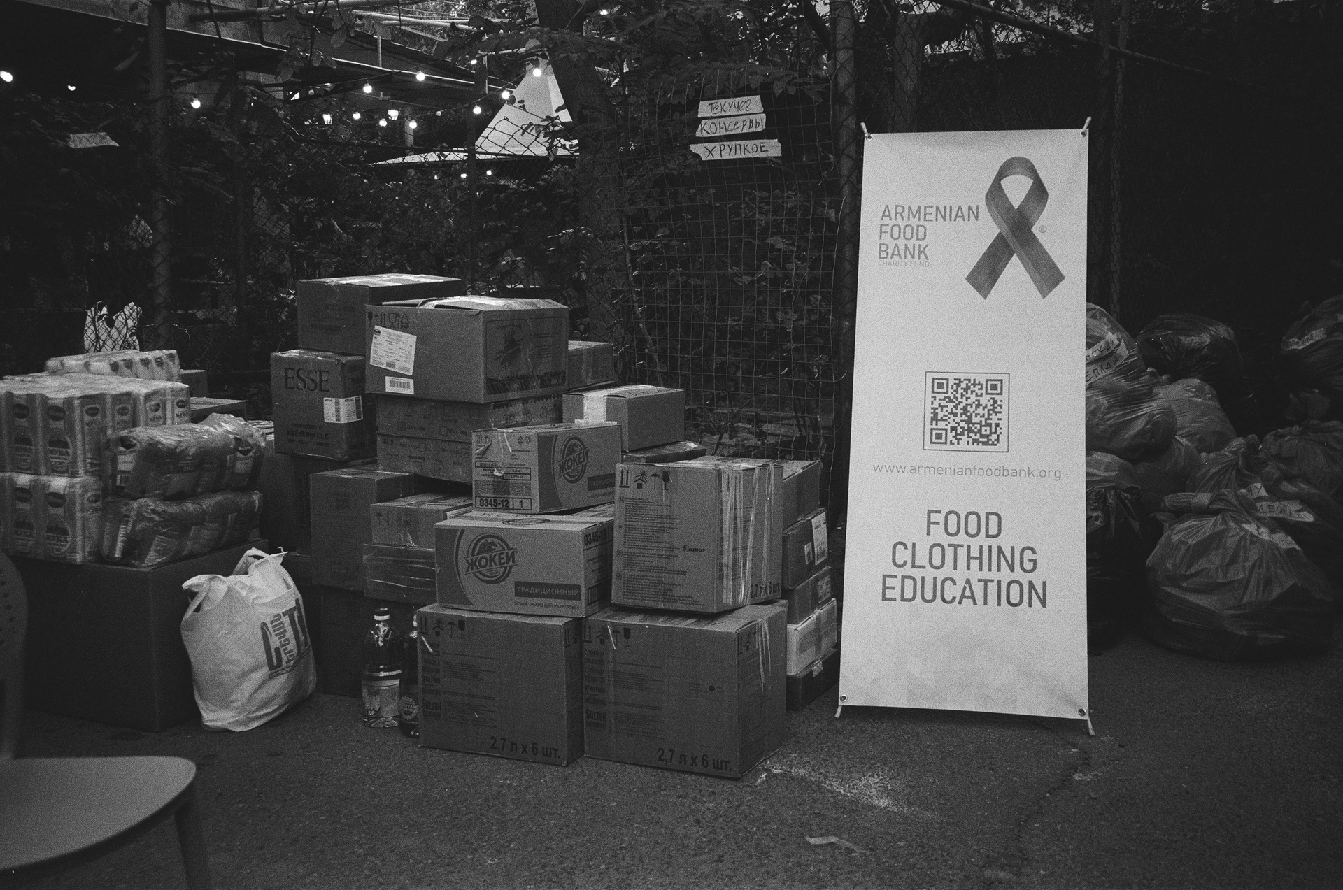 A humanitarian aid collection point set up in the city center at the intersection of two streets. The collection took place in parallel with the protest actions. September 2023.